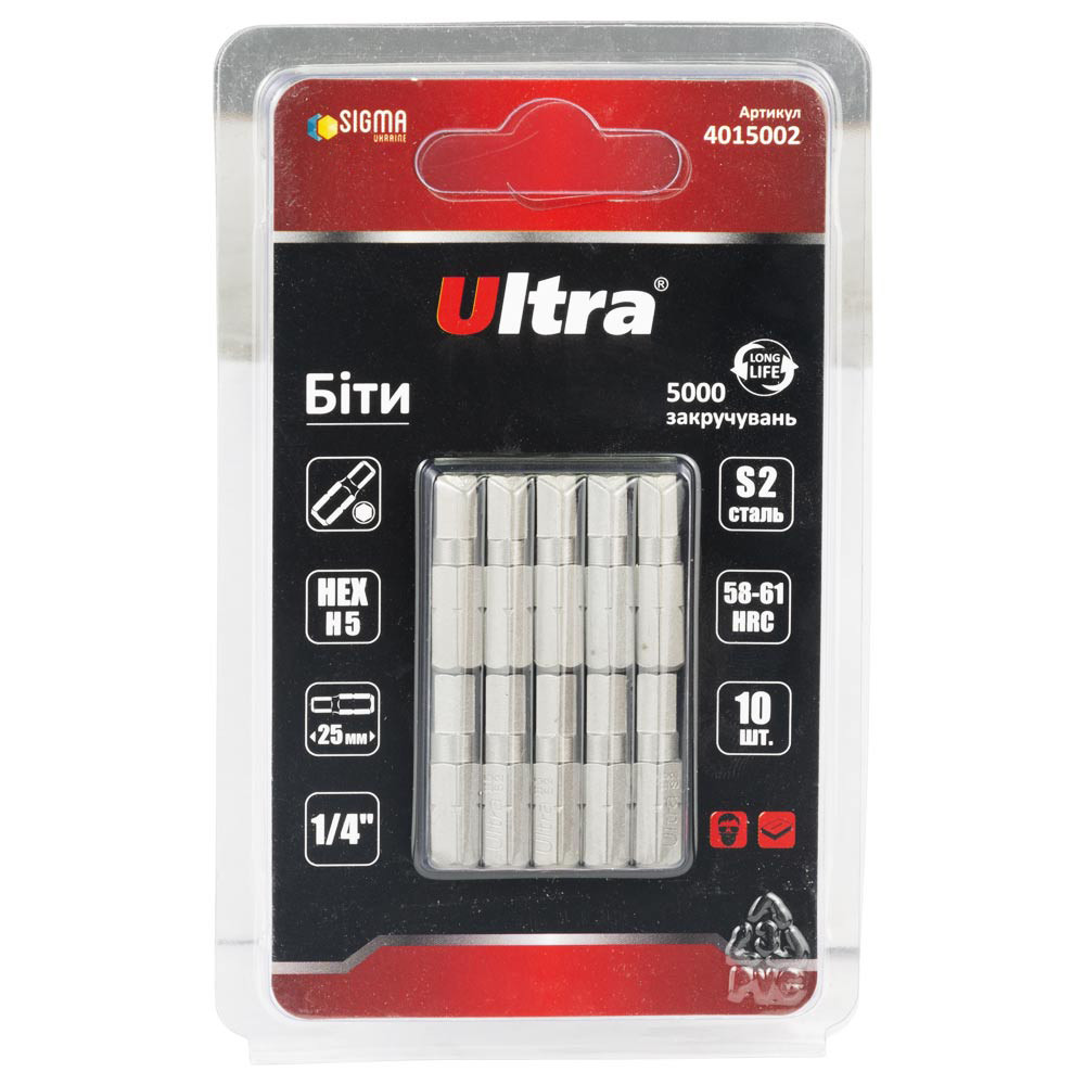 Біти HEX 5×25мм 1⁄4" 10 шт S2 (блістер) ULTRA (4015002)